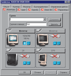 ATI не сдаетсяКомпания ATI по-прежнему остается единственной, кто реально сопротивляется господству nVIDIA в сфере 3D-решений. Однако вся борьба протекает в режиме преследования. Создается впечатление, что графические процессоры ATI появляются в ответ на очередные чипы nVIDIA. Поэтому выпуск новых семейств Radeon (7ххх и 8500) можно рассматривать как попытку исправить сложившуюся ситуацию. Теперь уже nVIDIA пришлось отвечать своими чипами Titanium, чтобы не потерять звание производителя быстрейших процессоров. Итак, давайте посмотрим, чем примечателен самый производительный на сегодняшний день видеоконтроллер Radeon 8500 от компании ATI. ![]() Интерфейс настроек драйверов от ATI традиционно наглядный и продуманный. Процессор производится по 0,15-мкм технологии. Блок рендеринга Pixel Typestry II состоит из четырех конвейеров с возможностью наложения двух текстур за один такт. Тактовая частота ядра процессора и модулей памяти — 275 МГц. (Внимание! Версия процессора, обозначаемая буквами LE (lite edition), оснащена чипами памяти и ядром процессора с частотой, пониженной до 250 МГц. Ширина интерфейса памяти составляет 128 бит.) В новом процессоре нашли отражение лучшие инновации, реализованные в предыдущем поколении продуктов ATI. Благодаря усовершенствованному движку Charisma Engine II процессор поддерживает геометрические преобразования и расчет освещенности. В свою очередь Hyper Z II уменьшает требования к пропускной способности подсистемы памяти. Технология Smartshader позволяет реализовать весь потенциал DirectX 8.1, обеспечивая более высокую реалистичность текстур и освещения (этот фактор стал одним из элементов рекламной компании ATI по продвижению Radeon 8500 на рынке). Smoothvision реализует улучшенную схему полноэкранного сглаживания при незначительном падении производительности. И все же предметом гордости компании стала разработка Truform, благодаря которой вид трехмерных объектов преобразился: компьютерные образы приобрели реалистичные очертания. Фирменная технология поддержки вывода изображения на два монитора носит название Hydravision — можно подключать обычные ЭЛТ-дисплеи, ЖК-мониторы и телевизоры. Технология Video Immersion II обеспечивает улучшенное качество воспроизведения видео за счет нового алгоритма обработки, а чип RAGE THEATER является одним из элементов системы, позволяющих добиться высокого качества видеоизображения. ![]() В закладке «Мониторы» можно выбрать режим поддержки двух дисплеев. Отметим, что одной из важных черт последних графических процессоров ATI была мультимедийность: помимо традиционных функций, присущих всем процессорам, они обладали хорошей аппаратной поддержкой воспроизведения видео и DVD. Помимо режима «компенсация движения» аппаратно поддерживается обратное преобразование Фурье. Последнее до сих пор является фирменной особенностью продуктов ATI. Видеоадаптер ATI от компании SuperGrace?Возможность приобретать видеокарты на процессорах ATI от сторонних производителей пользователи получили не так давно. Было время, когда канадская фирма, подобно компании 3dfx, все делала самостоятельно. Однако в последнее время ATI решила изменить свою позицию. Теперь на рынке можно встретить большое количество видеокарт Radeon, производителем которых является одна из сторонних компаний. ![]() Графический адаптер ATI. На коробке видеокарты, предоставленной нам, было крупными буквами написано: Radeon 8