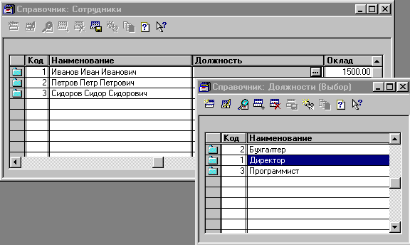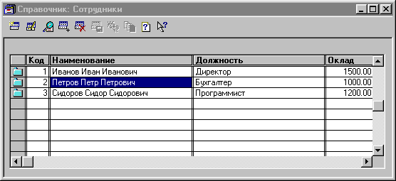 26. Заведите нескольких сотрудников. Например, Иванов - директор, Петров - Бухгалтер, Сидоров - Программист. Заметьте, что при